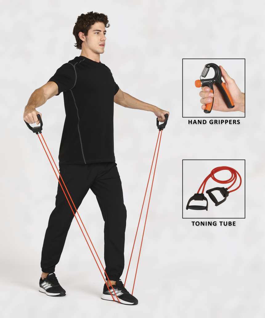 TONING TUBE Used with Familiar Exercises Double Toning tube is specifically designed to challenge your core muscles. Adaptable for multiple fitness levels, whether you’re a beginner or an expert, resistance bands are for you. They come in a variety of resistances, including medium and heavy, and you can further adjust the intensity of your toning tube workouts by giving the toning tube more or less slack. ADJUSTABLE LENGTH Resistance bands and tubes are made of strong, thin rubber with handles at the end, and come in a variety of resistances depending on your fitness level. With resistance bands, you can do just about any type of strength training exercise – chest presses, rows, shoulder presses, triceps extensions, bicep curls, and even squats – without the need for heavy weights. HAND GRIPPER Durable construction & ergonomic design. The material of the handgrip strengthener is good-quality abs plastic, plus stainless steel tension springs, which make the handgrip strengthener more durable. Adjustable resistance – hand grip strengthener can be adjustable from 22 to 88lbs ( 10to 88kg). It can satisfy different power levels, from the beginners to the advanced. Improved Dexterity – Hand grips will work to build up your fingers independently, thus improving dexterity. Musicians sometimes work their fingers by using spring-loaded hand grips in order to make sure they can deftly build up enough strength in each finger to confidently apply just the correct quantity of pressure on their instruments. Typists can also benefit from improved dexterity Walking the dog – If you have a larger dog, then you know how challenging it can be to hold on to the leash when something grabs its attention. Having a strong grip means that you won’t need to go running after your pet the next time it chases a squirrel.