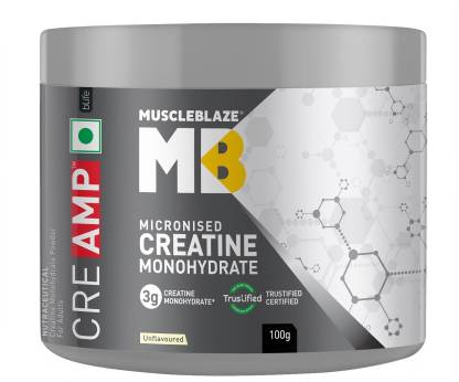 MUSCLEBLAZE Creatine Monohydrate CreAMP with CreAbsorb, Trustified Certified Creatine (100 g, Unflavored)